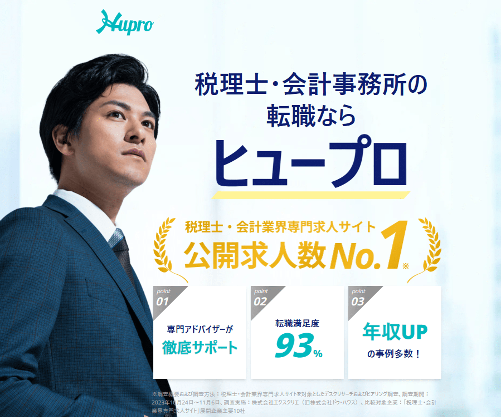 「ヒュープロ」は、業界最大級の求人情報を取り扱い、特に士業や管理部門のポジションに豊富な選択肢を提供しています。年間登録者数は2,500人を超え、取り扱い求人案件は3,000件以上。転職初心者でも安心して利用できる充実したサポート体制が整っています。 また、高収入求人が多数揃っており、年収アップを目指す方にも最適なサービスです。さらに、「リモート勤務可能」や「残業少なめ」といった、働きやすさを重視した求人も豊富にあります。 業界に精通したアドバイザーが、あなたの希望に合った最適なポジションを提案してくれます。士業の転職で失敗したくない方は、まずは登録しておくべきサービスです。 |